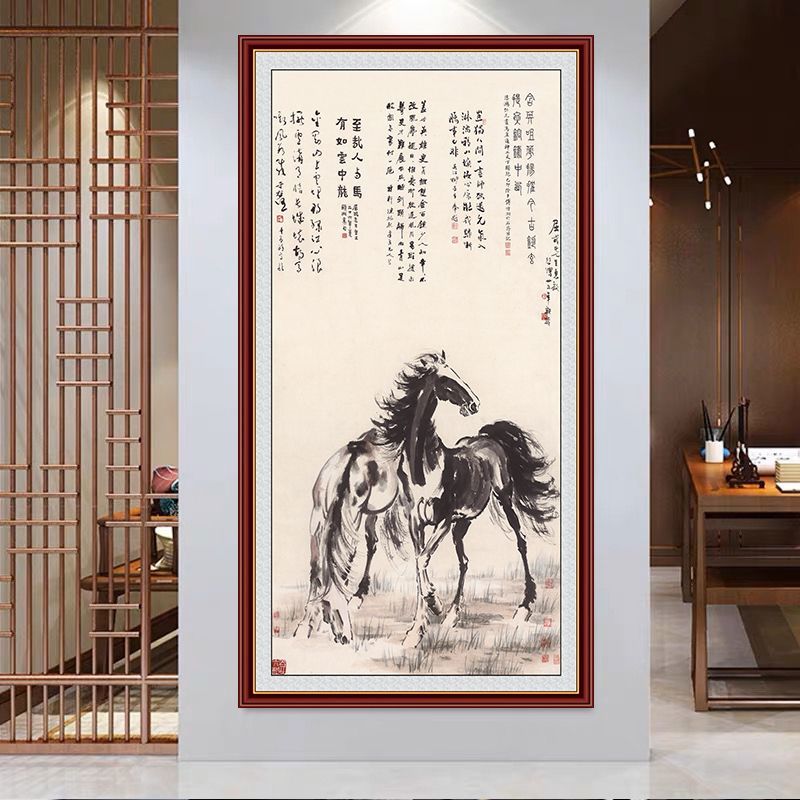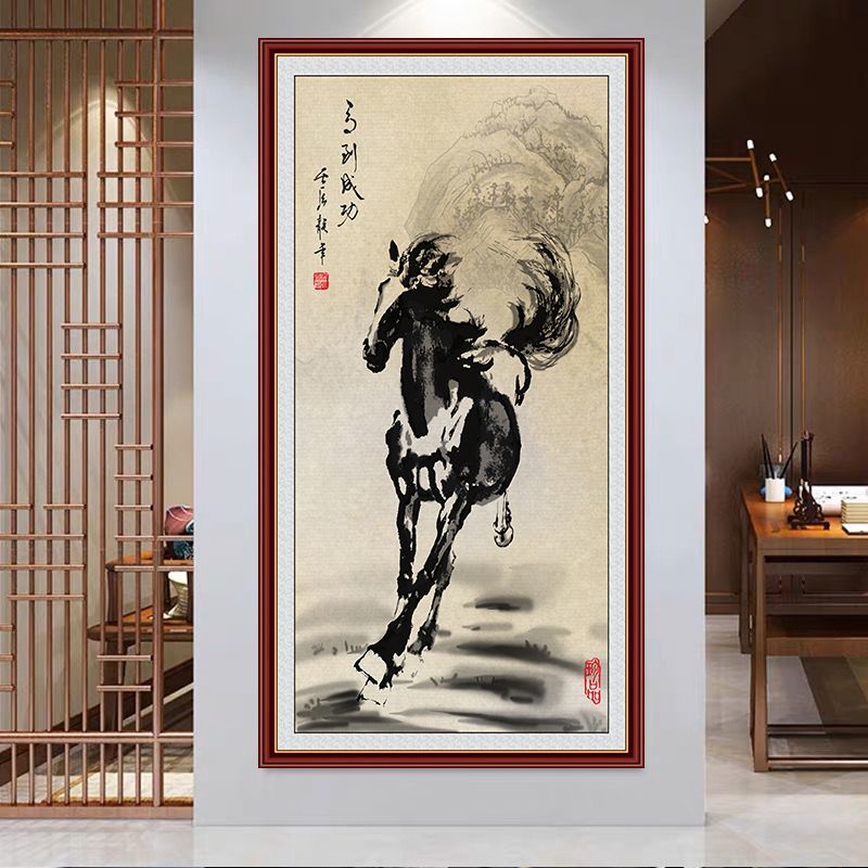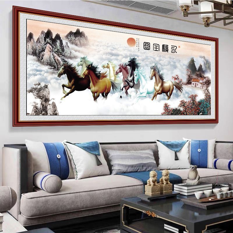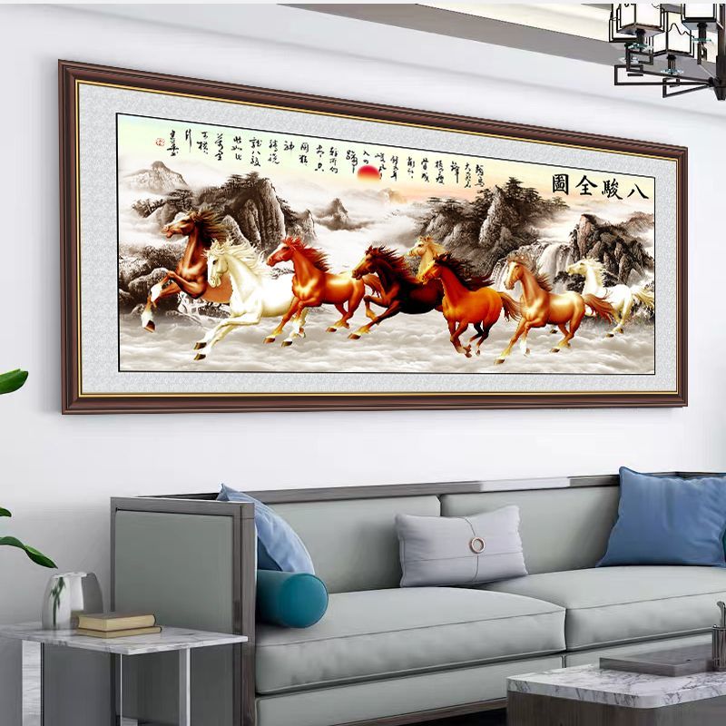 马年年画马到成功八骏图横版客厅沙发背景墙自粘装饰画办公室贴图