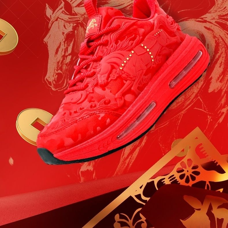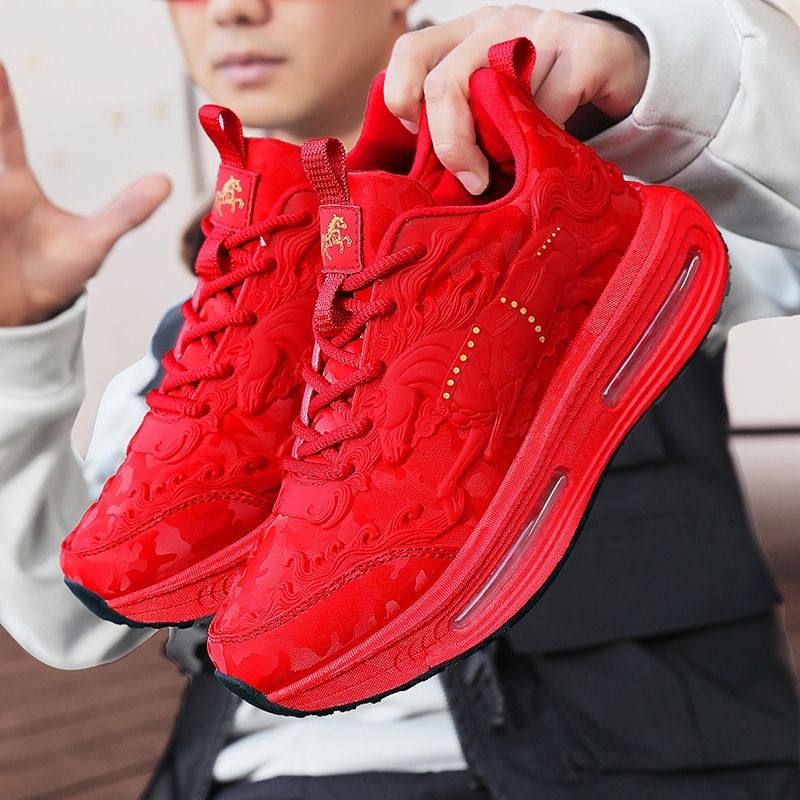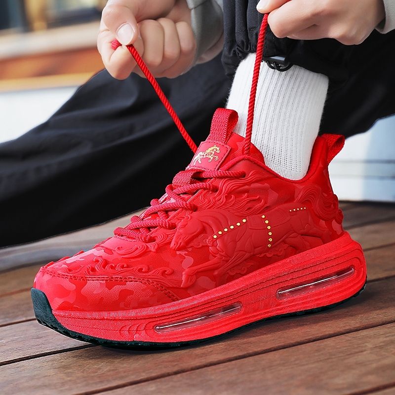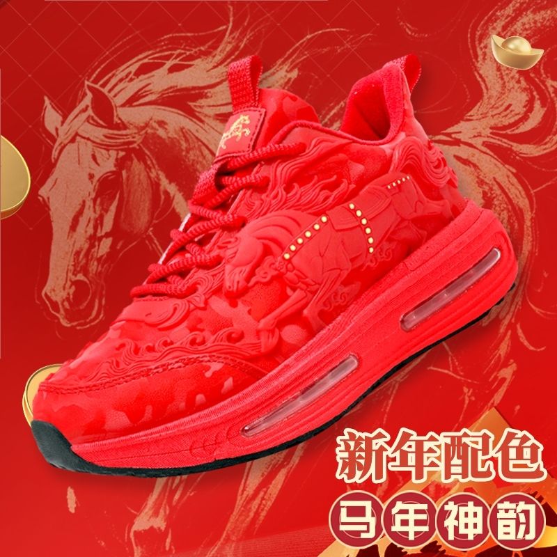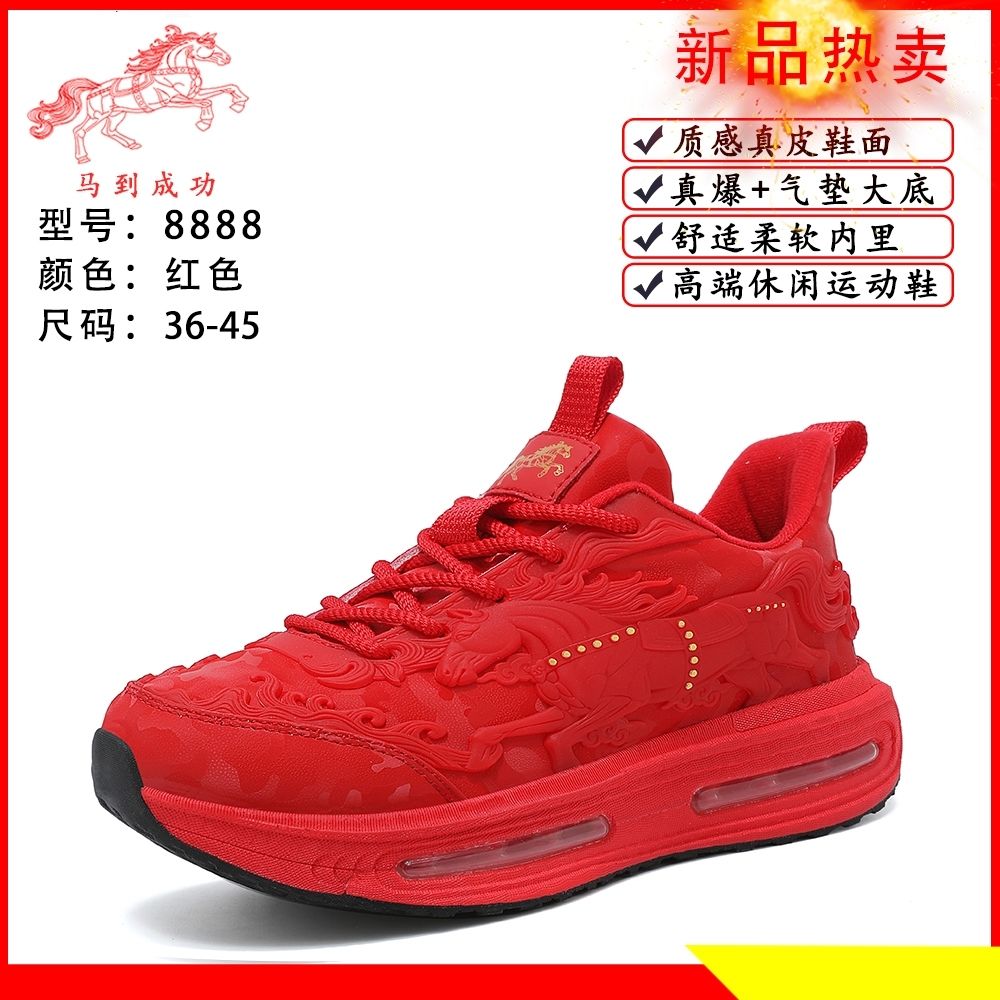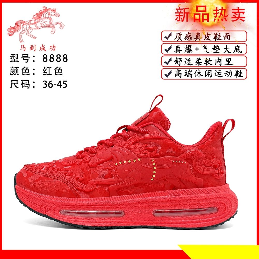 马年限定中国红休闲时尚潮流真皮真爆米花双气垫本命年首选8888