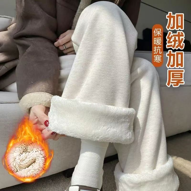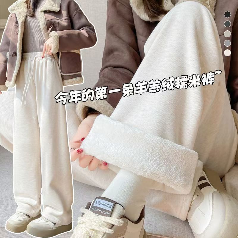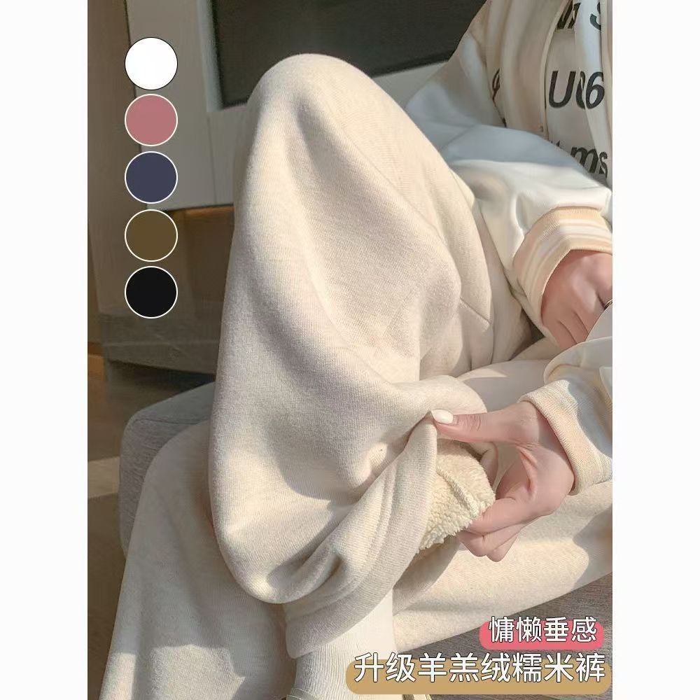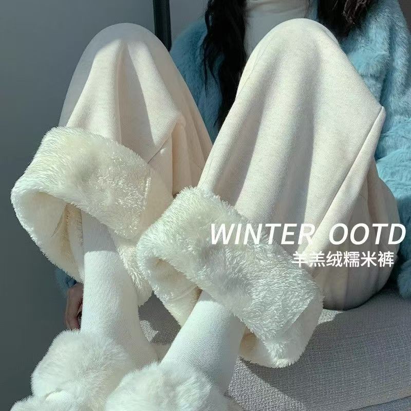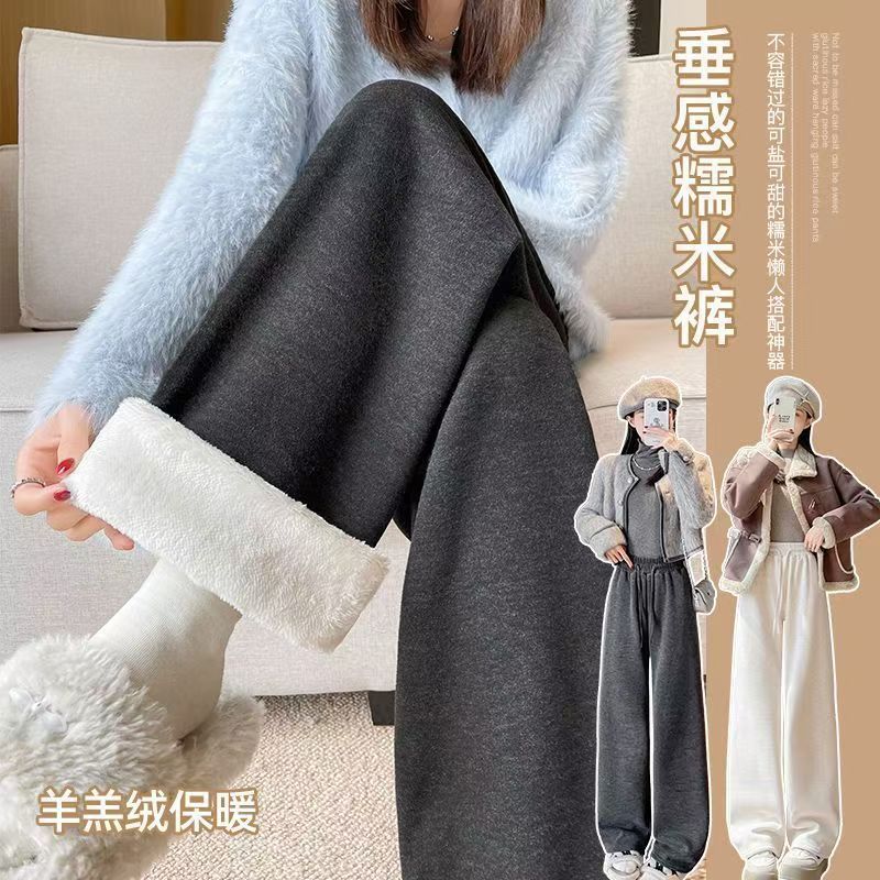 2025超长加厚新款羊羔绒糯米裤女款直筒糯米秋冬裤休闲阔腿裤厚绒