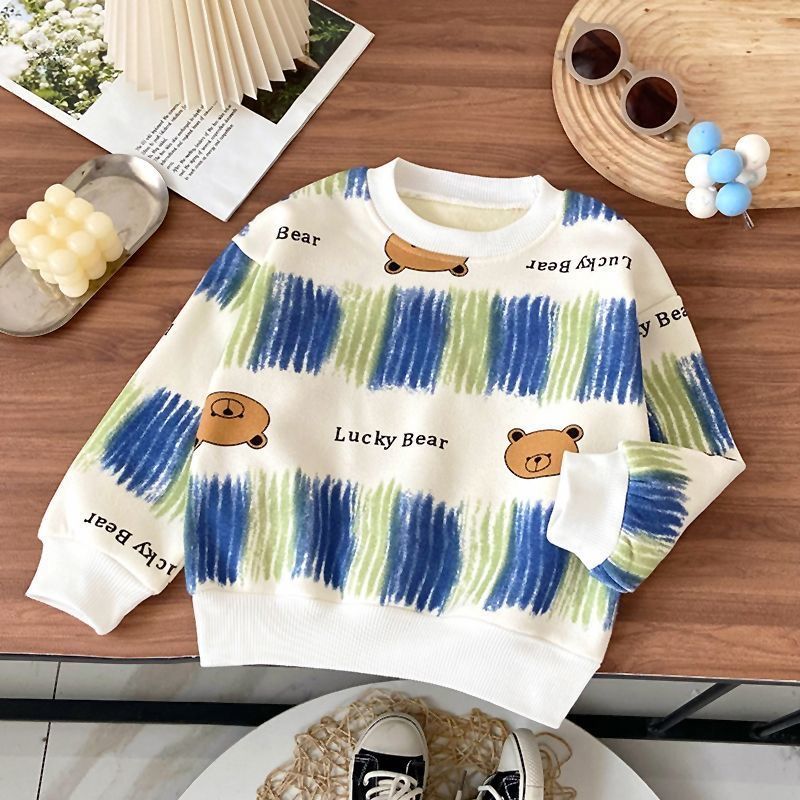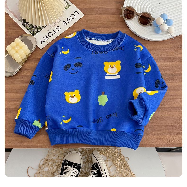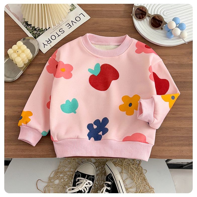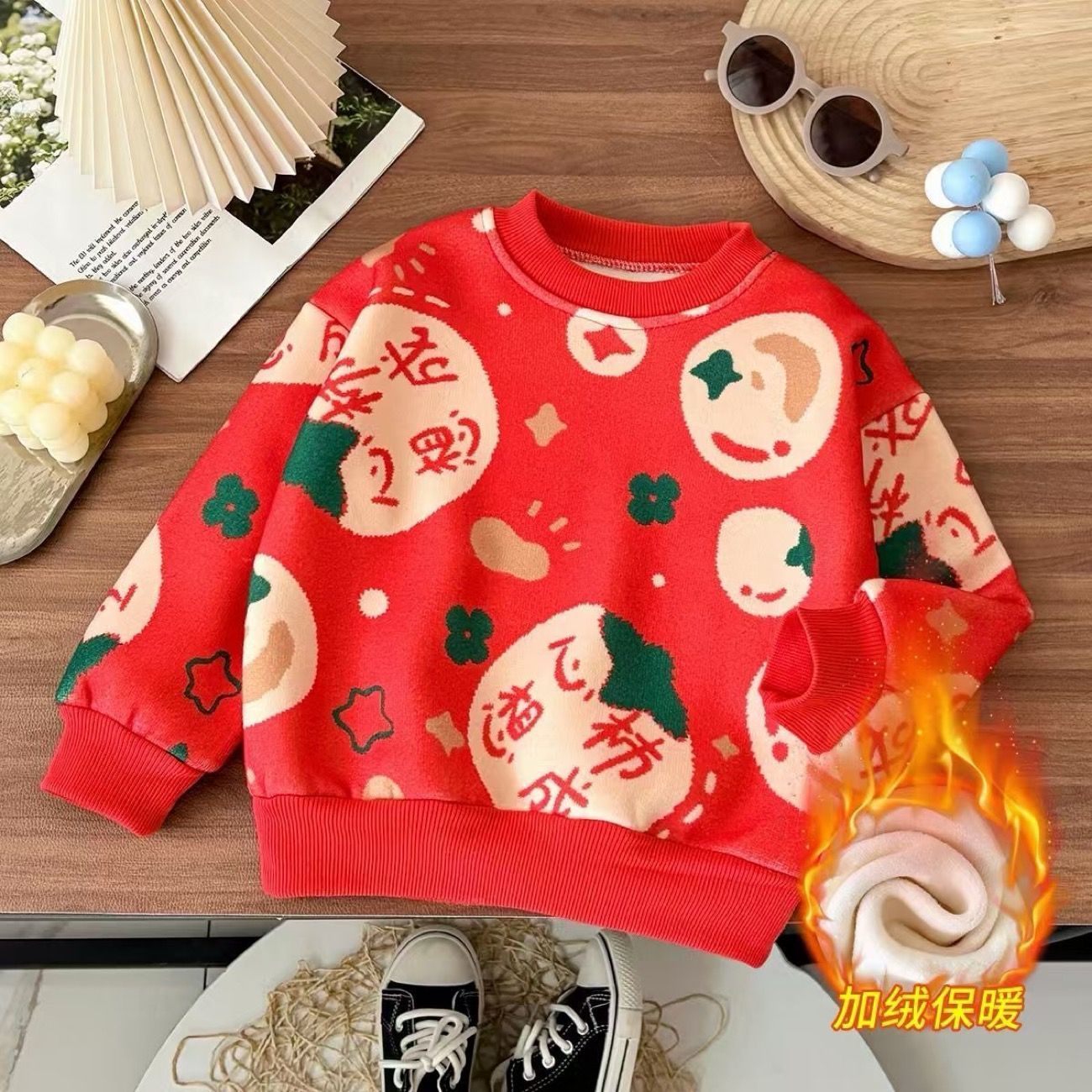 儿童秋冬加绒加厚宝宝卫衣时尚套头洋气男童毛衣圆领宽松保暖女童