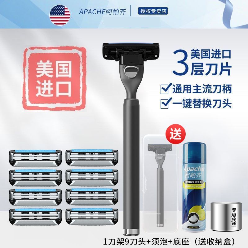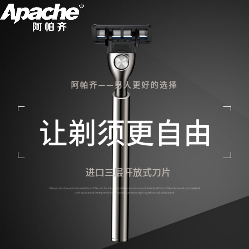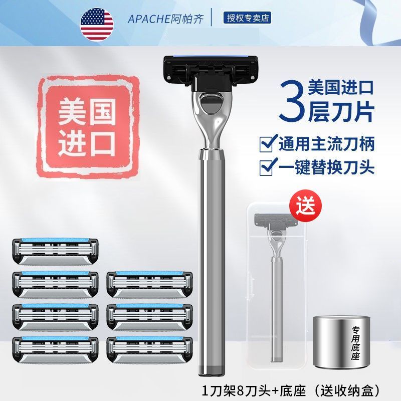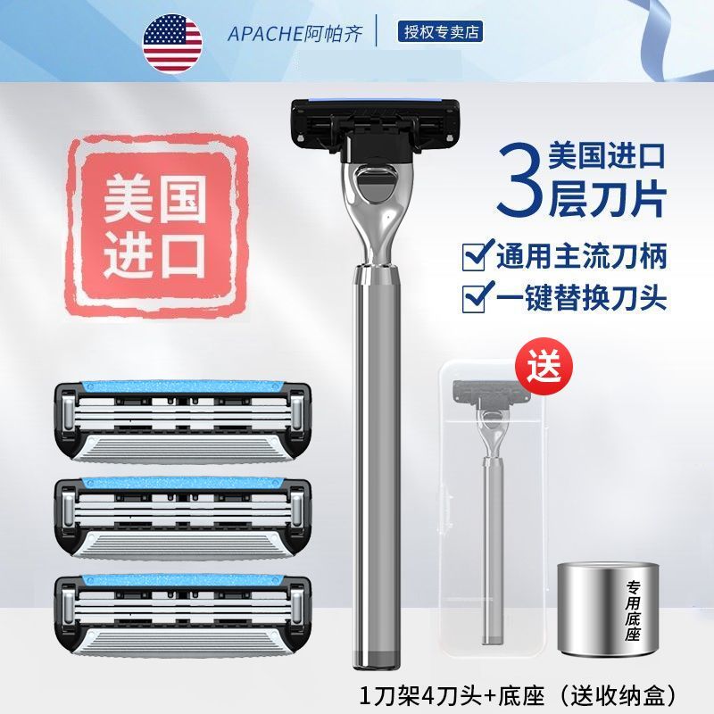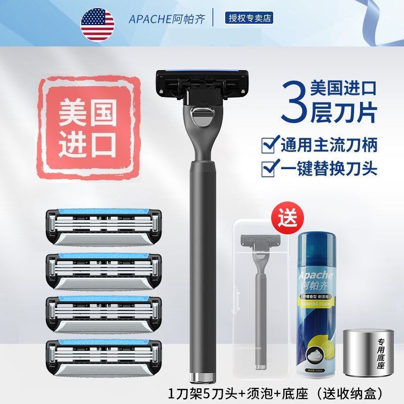 阿帕齐美国进口剃须刀手动男士剃须刀刮胡子3层刮胡刀片手动