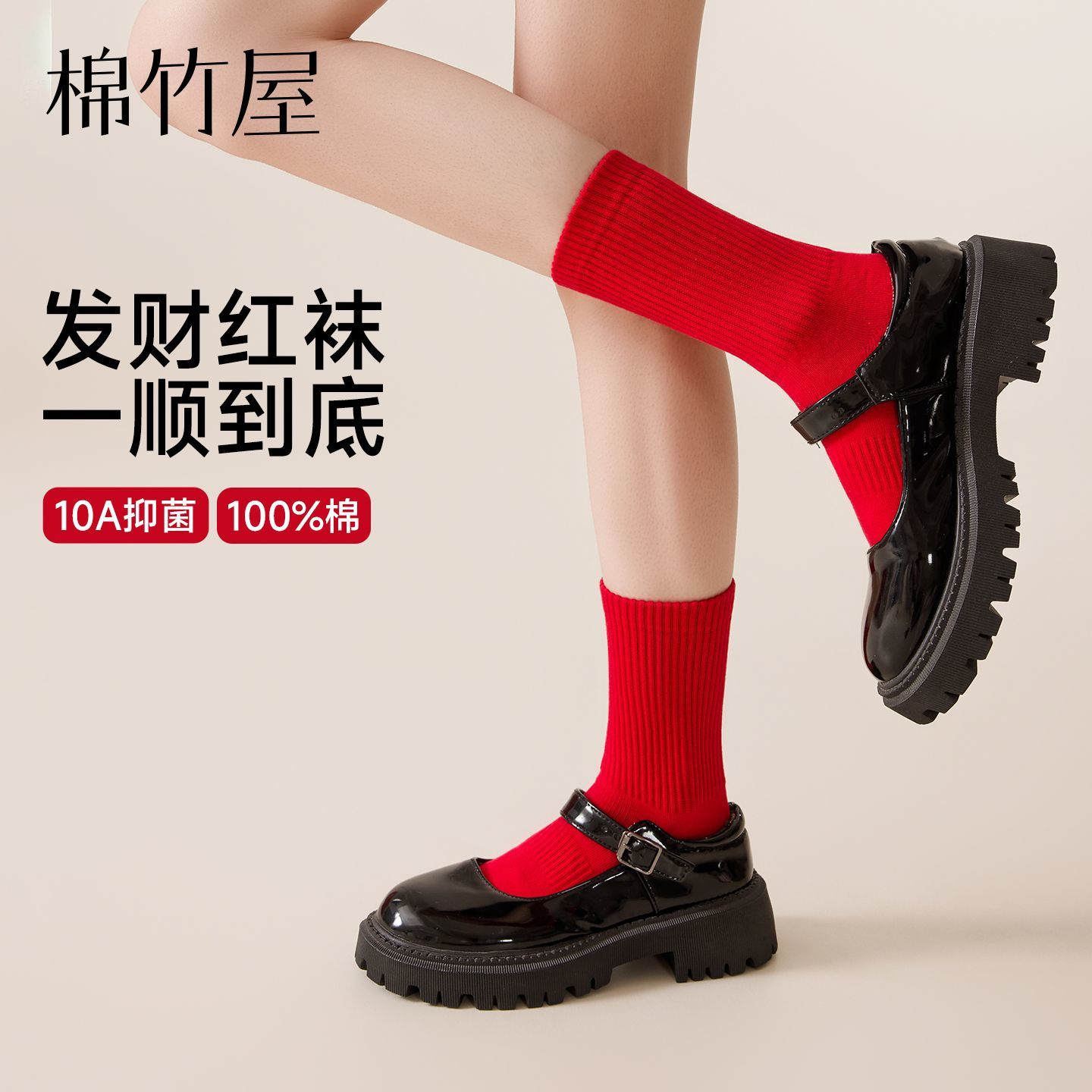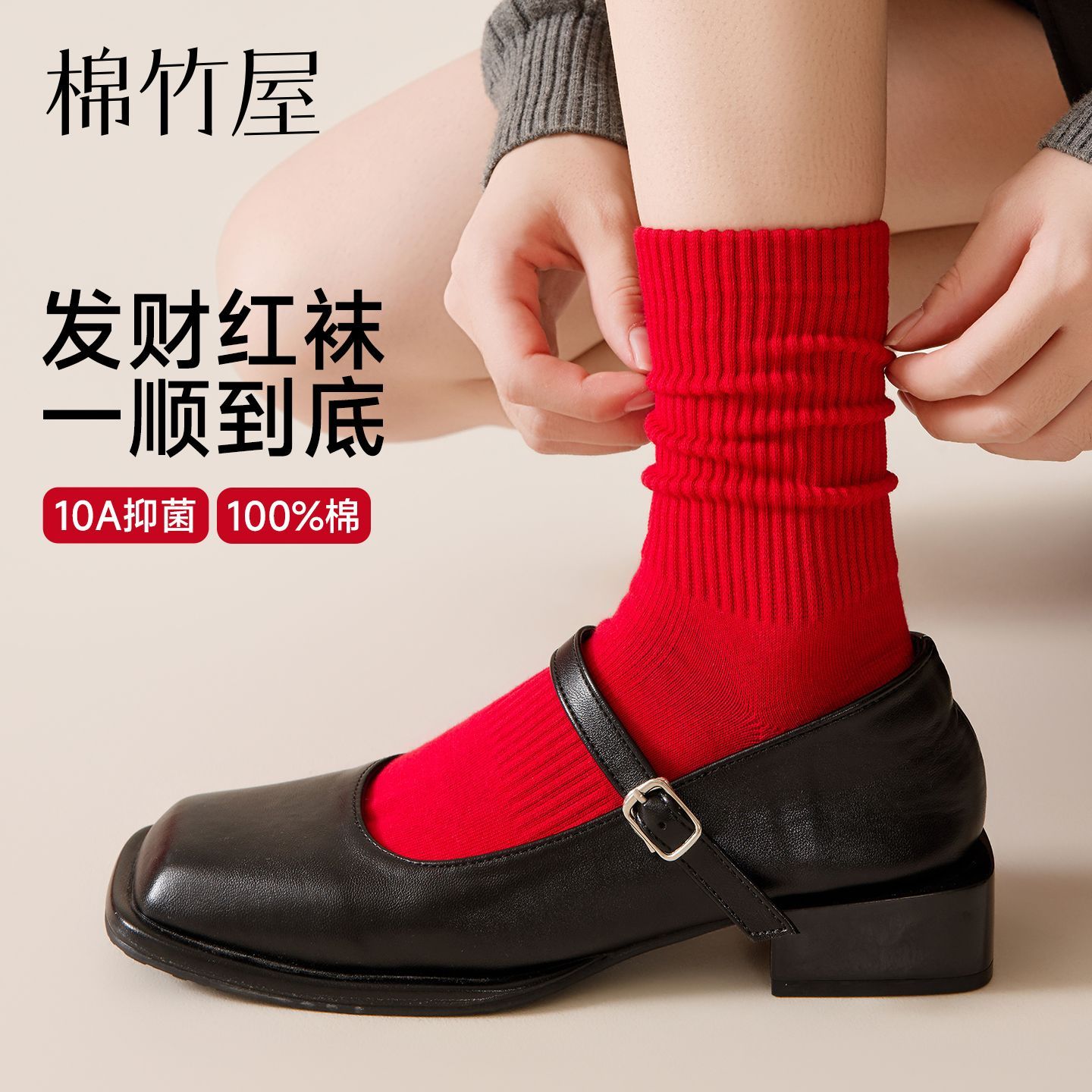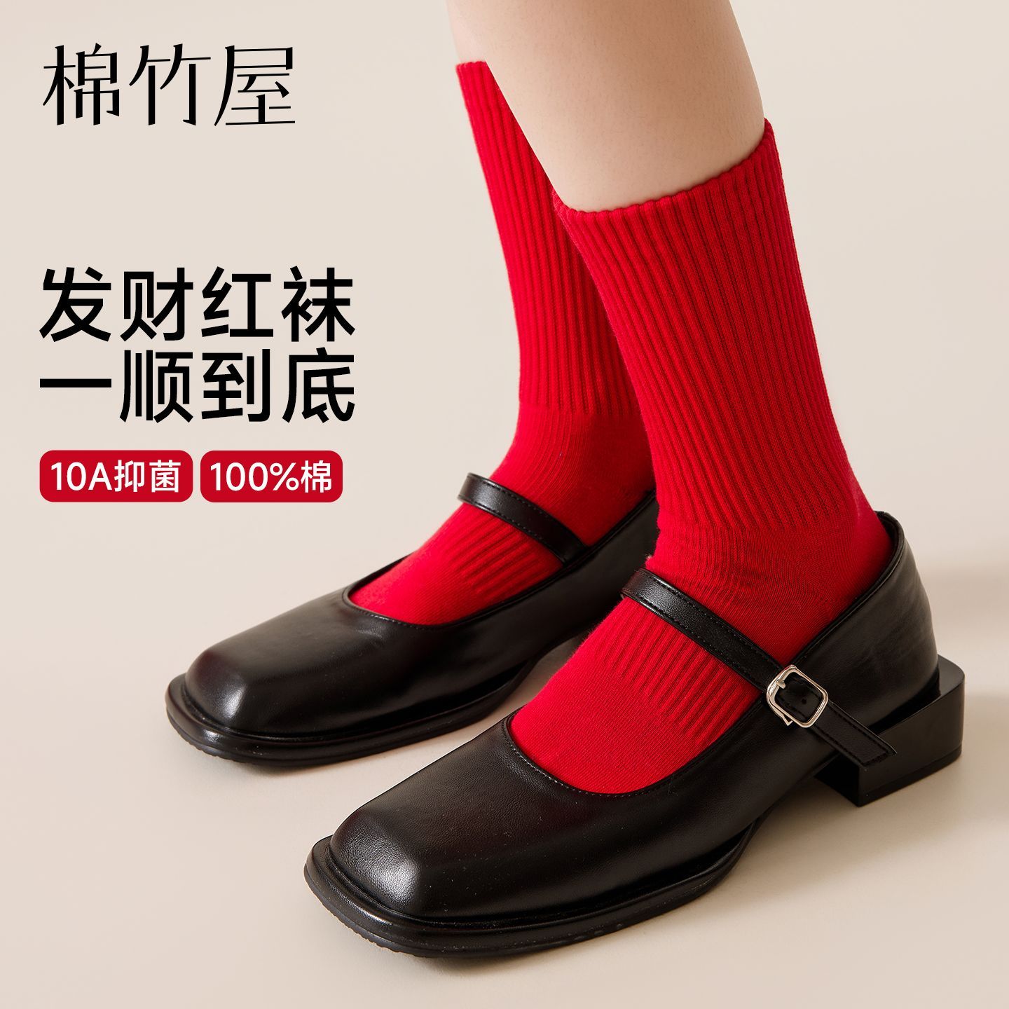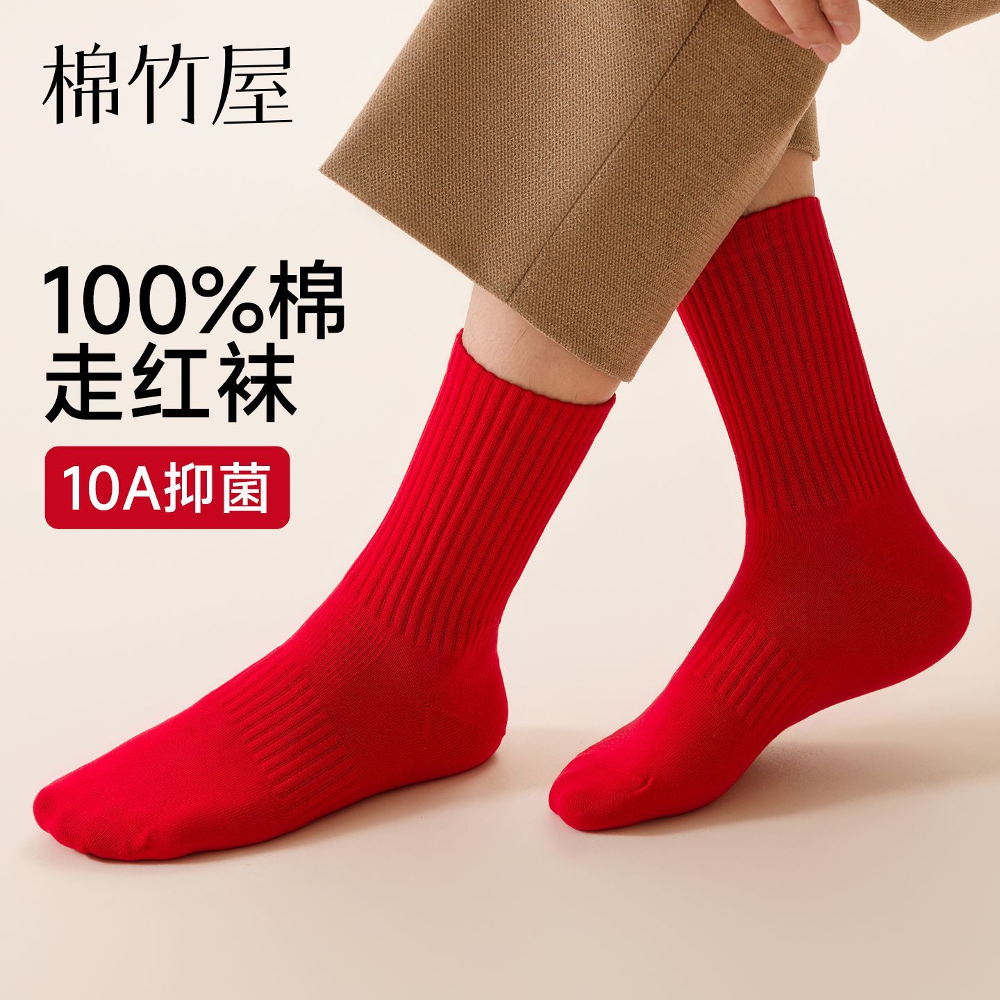 棉竹屋红袜子红色纯棉本命年结婚情侣秋冬中筒防臭抑菌男女新年袜