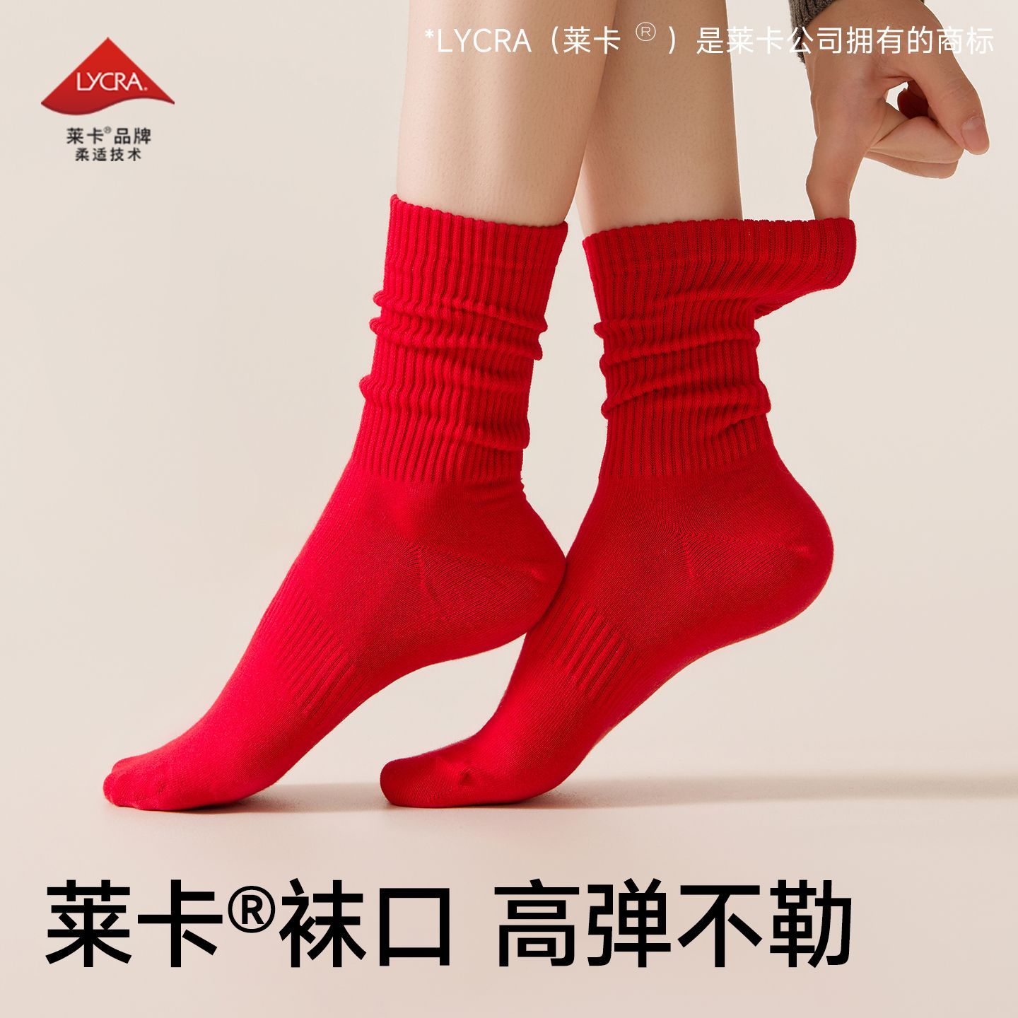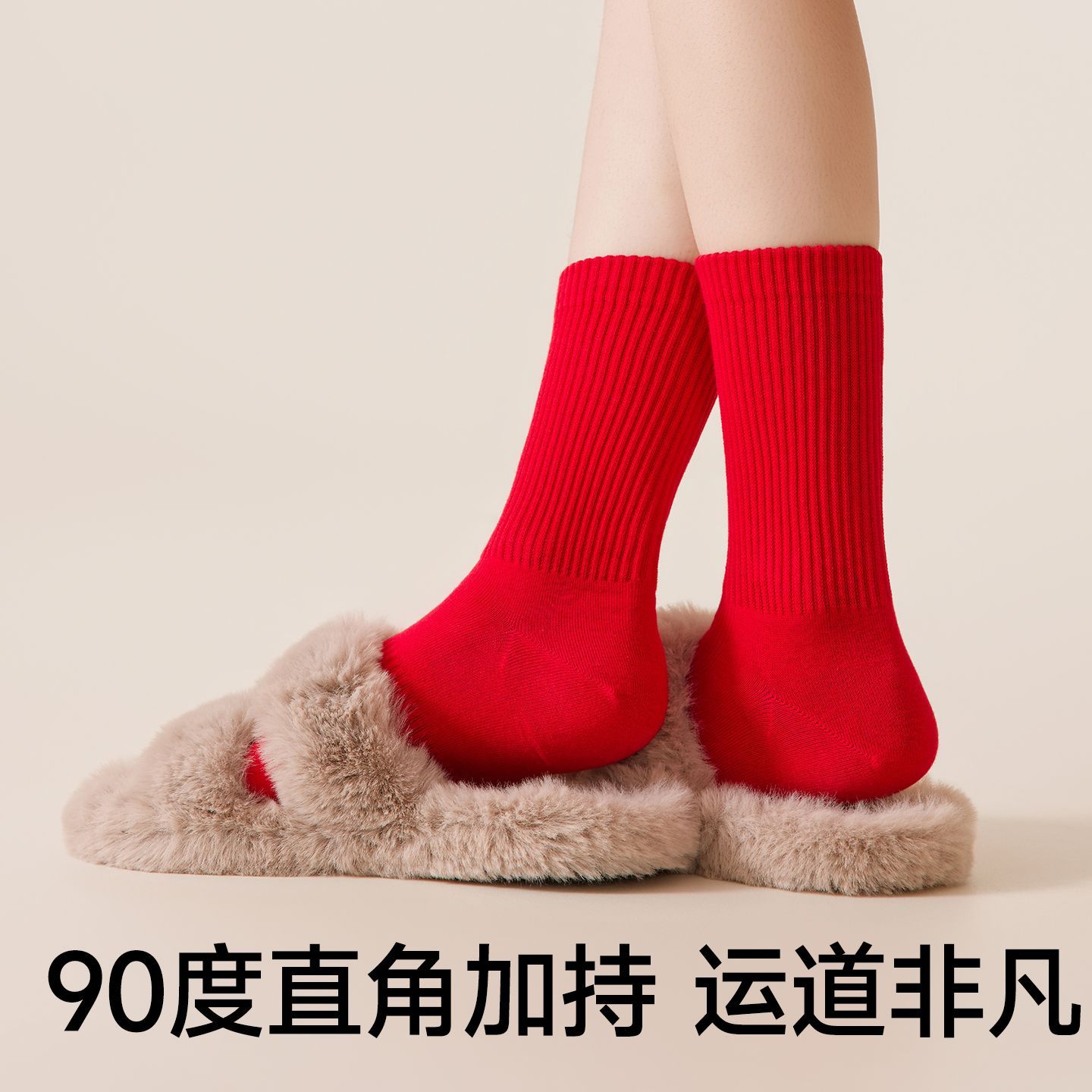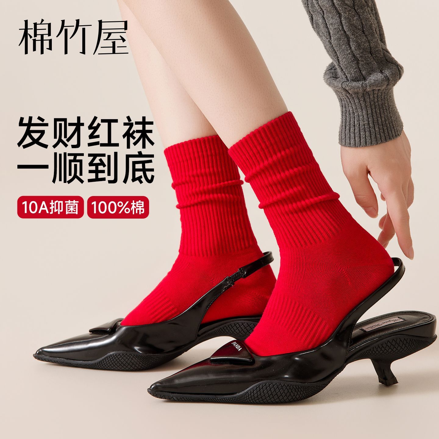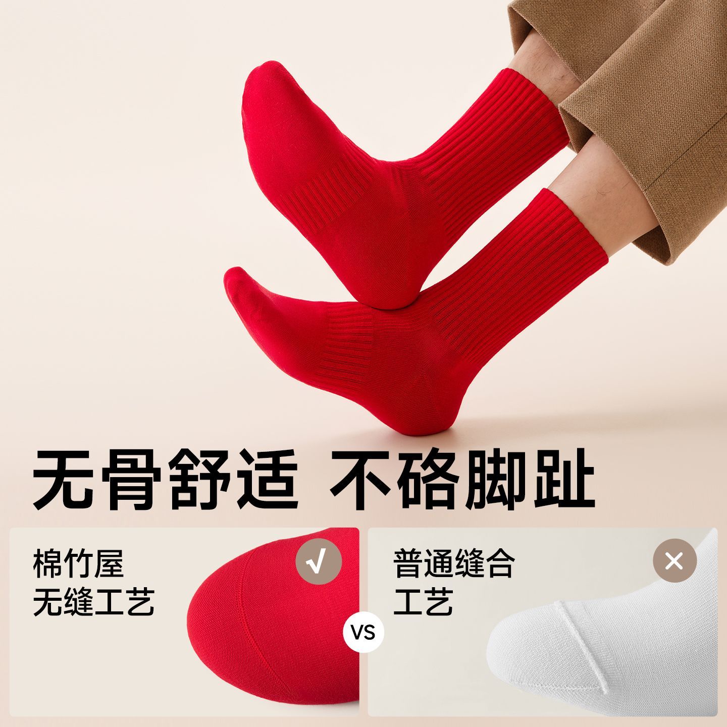 棉竹屋红袜子红色纯棉本命年结婚情侣秋冬中筒防臭抑菌男女新年袜