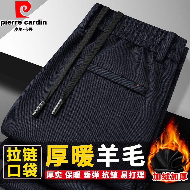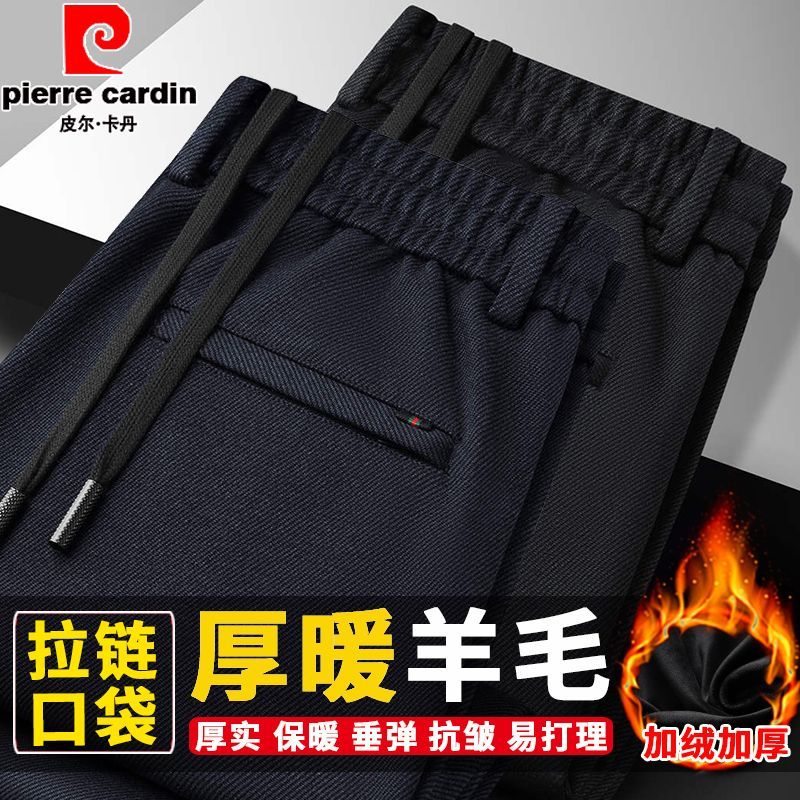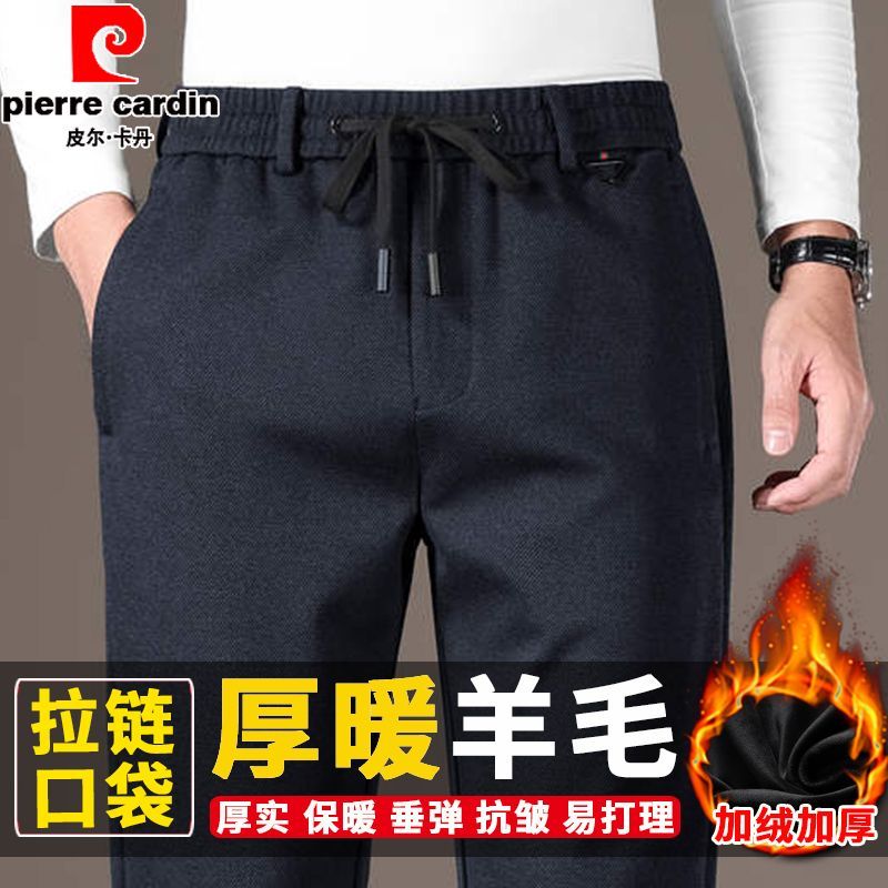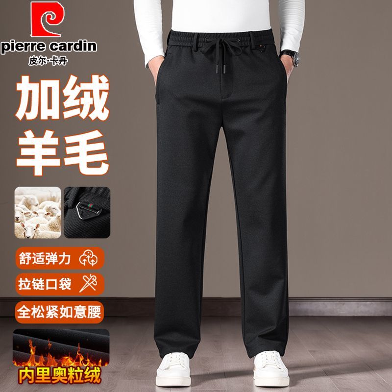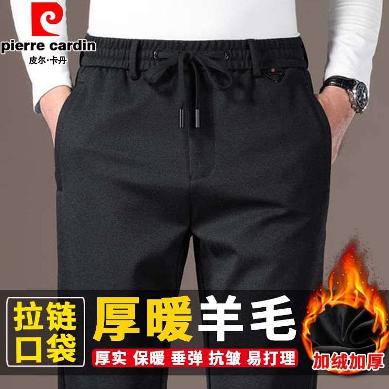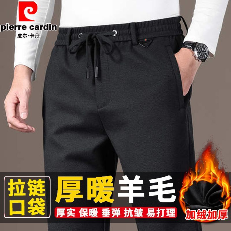 皮尔卡丹秋冬厚款加绒加厚羊毛休闲裤子男士宽松直筒抗皱松紧裤男