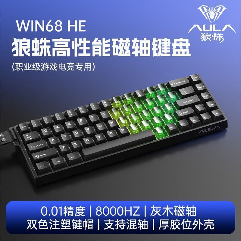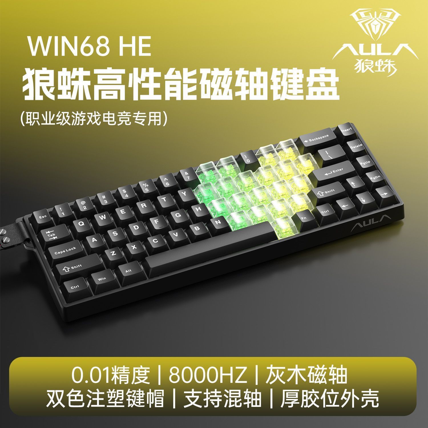 狼蛛(AULA)WIN 60/WIN68磁轴键盘侧刻电竞游戏有线连接键盘磁轴
