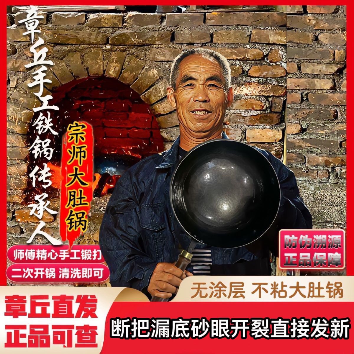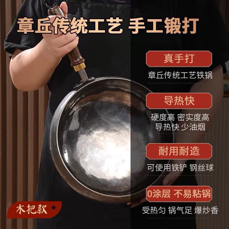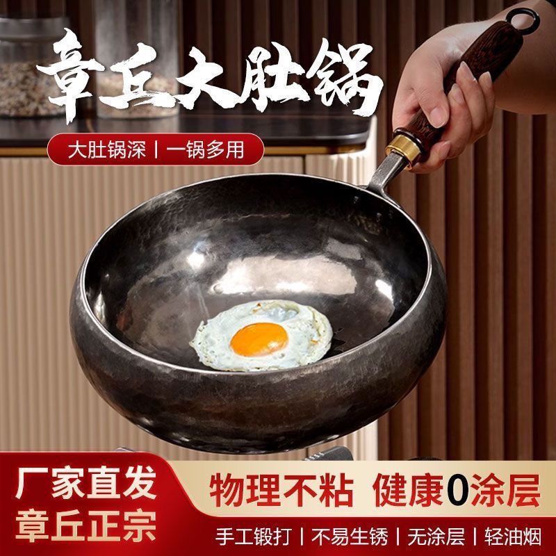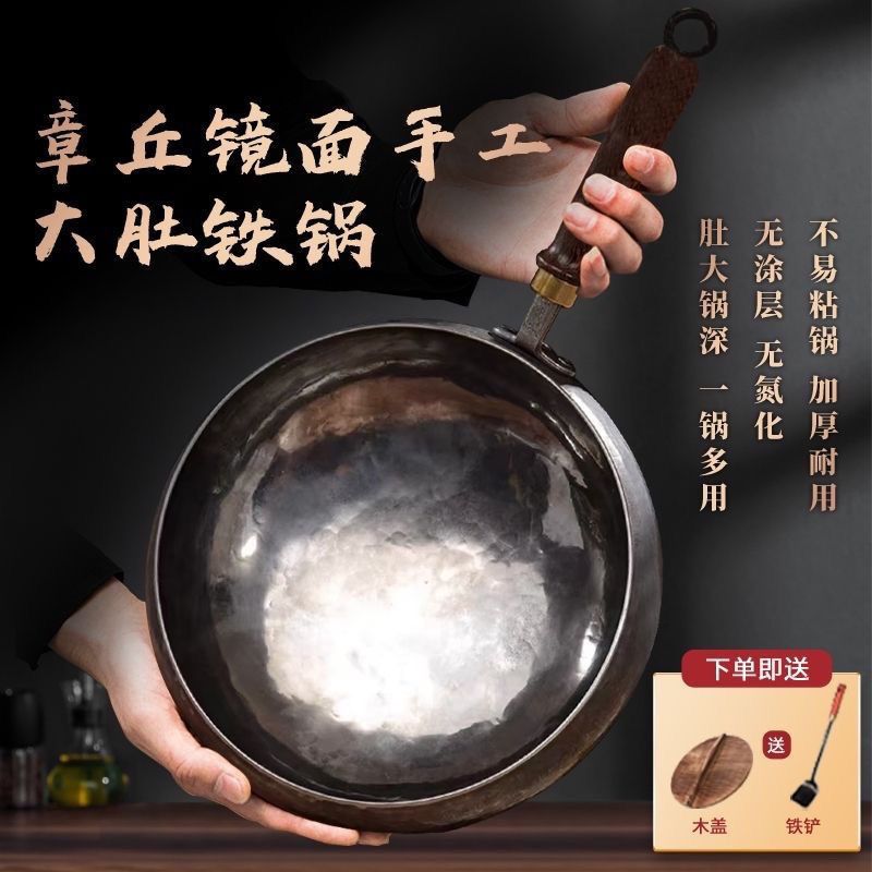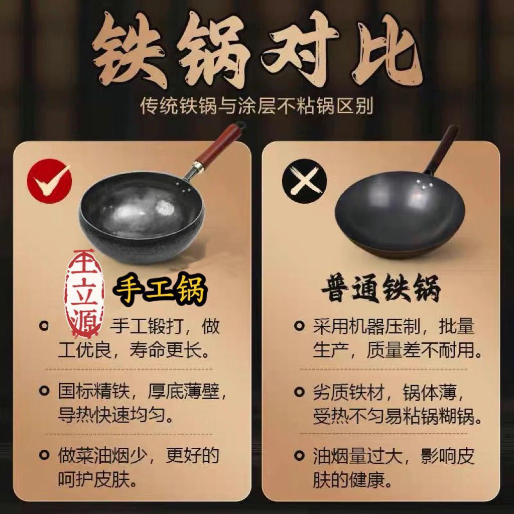 王立源官方旗舰章丘手工铁锅家用超厚老式不粘锅精铁无涂层大肚锅