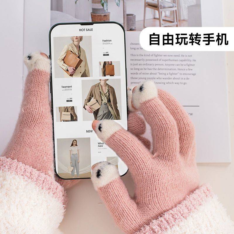 求职季薄荷曼波保暖新中式大人手套女款女冬季保暖手套T恤【8天内发货】