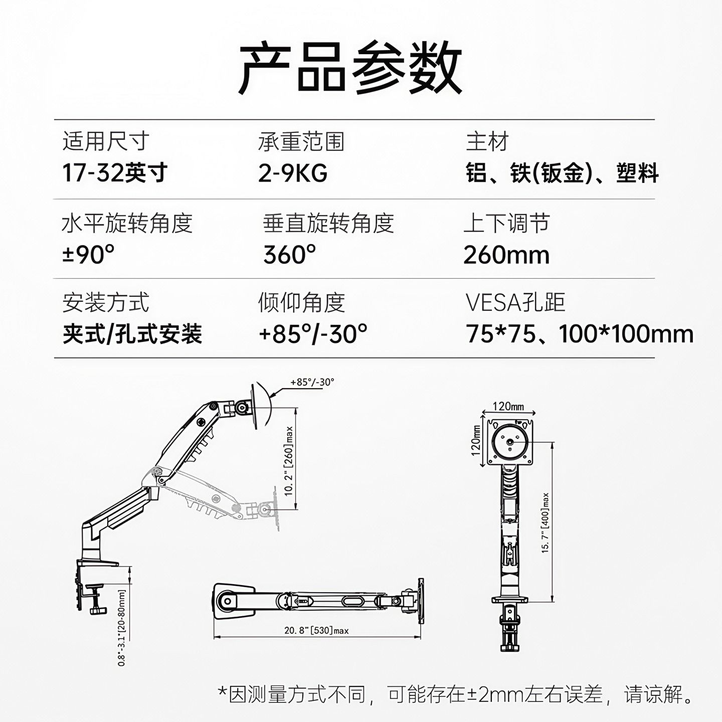 炫彩系列 nb支架f80 电脑显示器支架nb机械臂升降式万向旋转宿舍